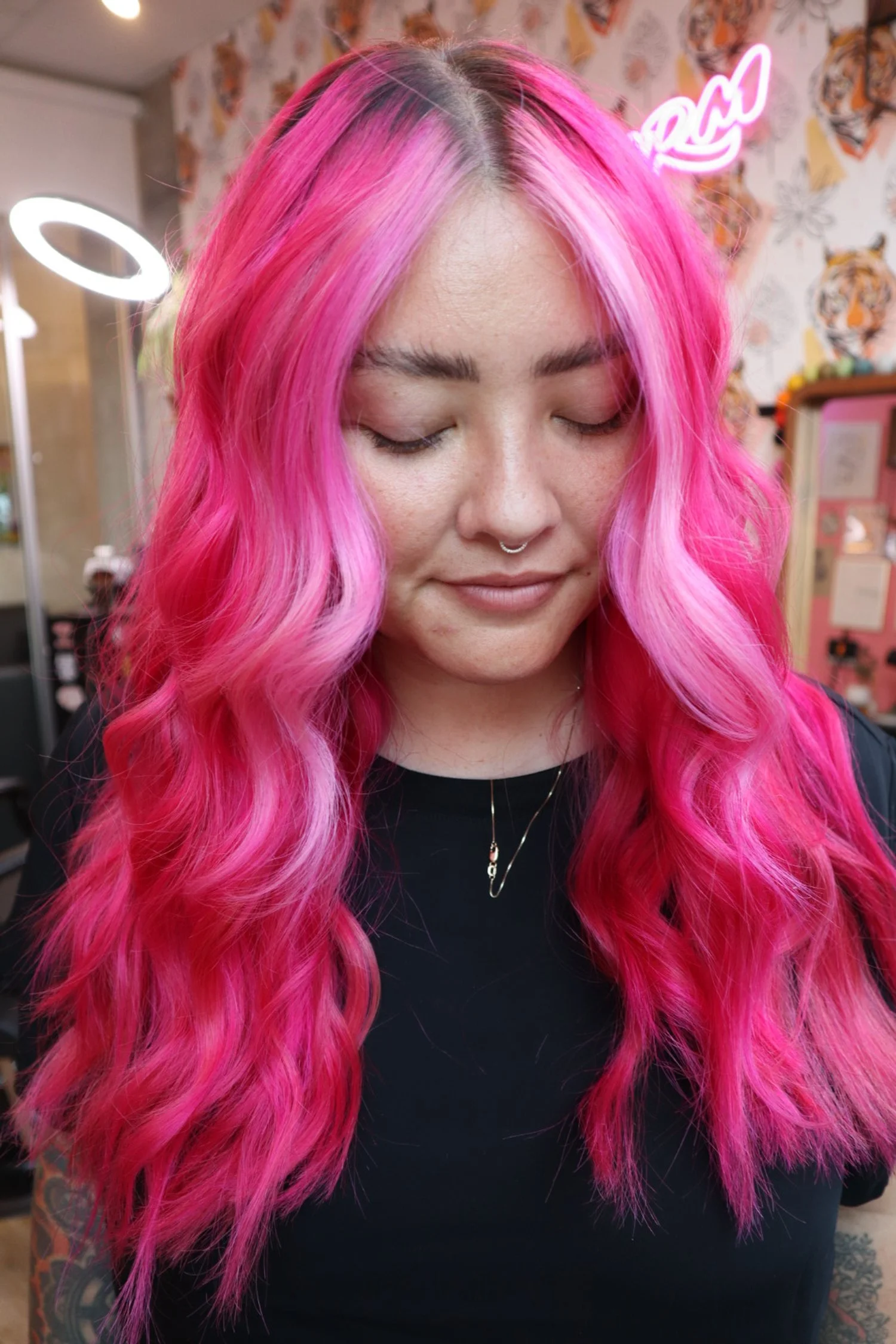 Blondeing roots to ends or custom placement with overlay of Pulp Riot vivids